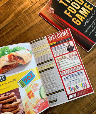 This 24 page URM Food Show programs were designed as a tool to advertise our show vendors, their booth locations (including an interactive fold out map) and information how they can win prizes.