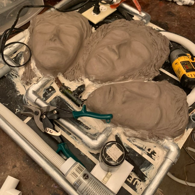 Just finished a strange mixed media family portrait. It reminds me of a cross between a 1970’s album cover and Han frozen in carbonite.